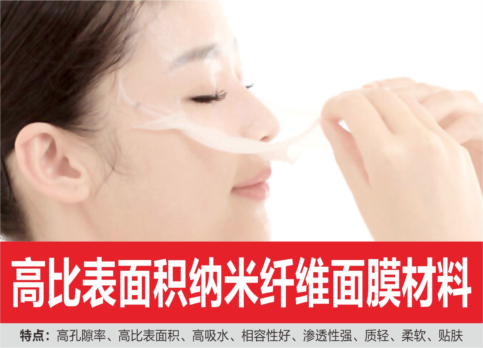 高比表面積納米纖維面膜由直徑約為頭發絲千分之一的超細纖維納米多孔材料構成,具有百分之八十以上的孔隙率,表現出極大的比表面積,極強的皮膚貼合度,較傳統無紡布和蠶絲面膜